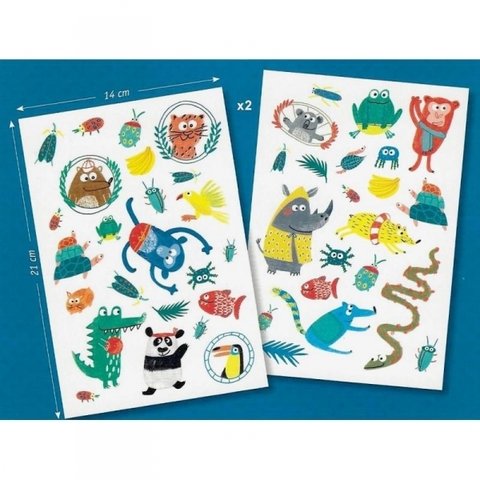 Два листа временных татуировок с изображением забавных, озорных животных, которые понравятся малышам! Они предварительно вырезаны, чтобы их было удобно использовать, и переносятся небольшим количеством воды. Дерматологически протестированы.