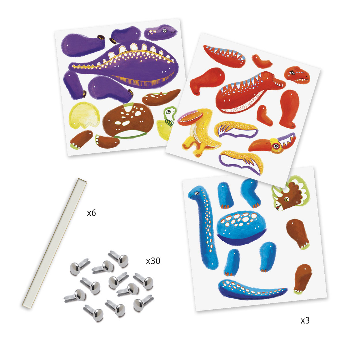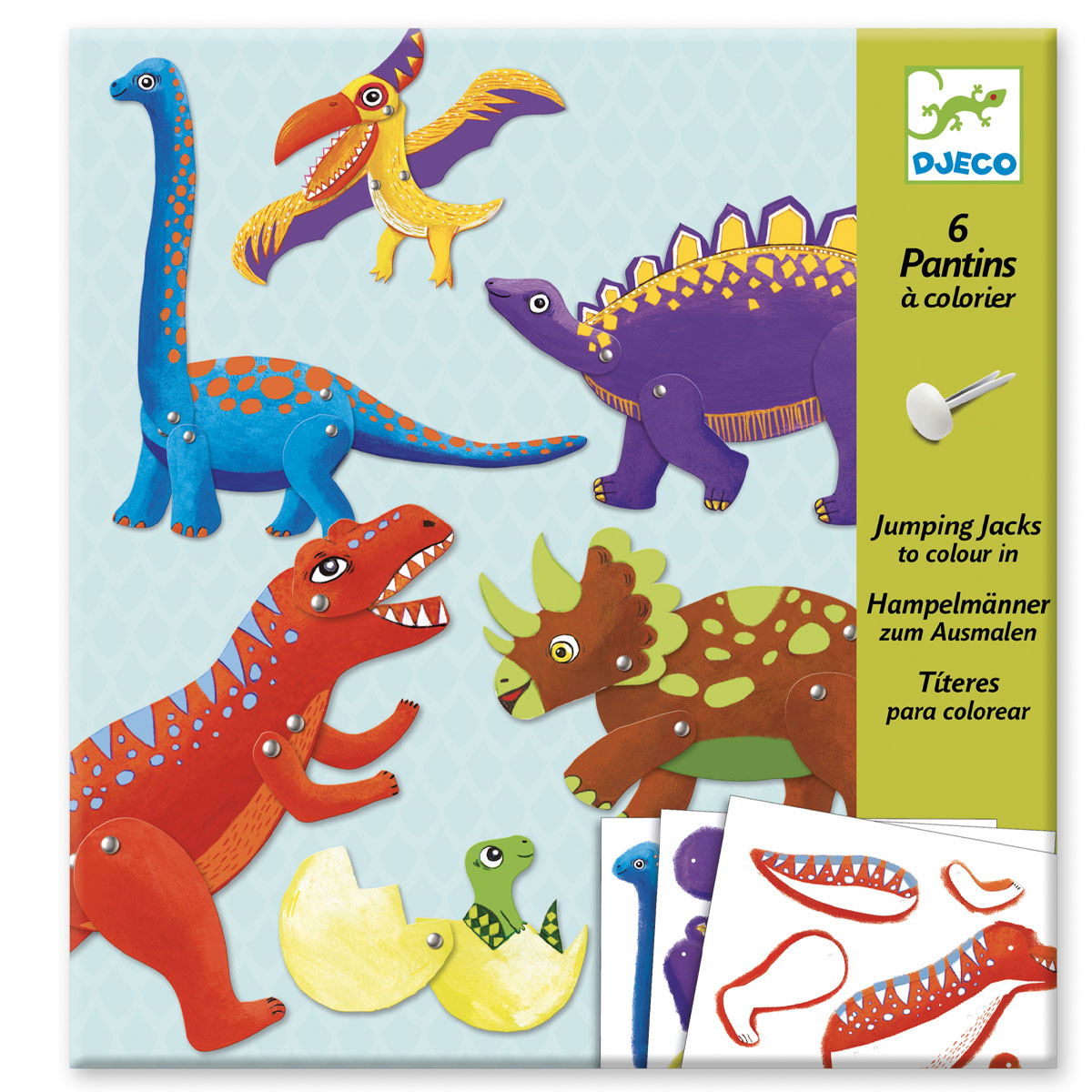 Набор для раскрашивания и сборки, чтобы сделать 6 кукол-динозавров. Дети раскрашивают и вынимают картонные детали, а затем собирают их, чтобы создать кукол-динозавров. Осталось только оживить их и придумать эпические истории о том, как динозавры бродили по Земле!