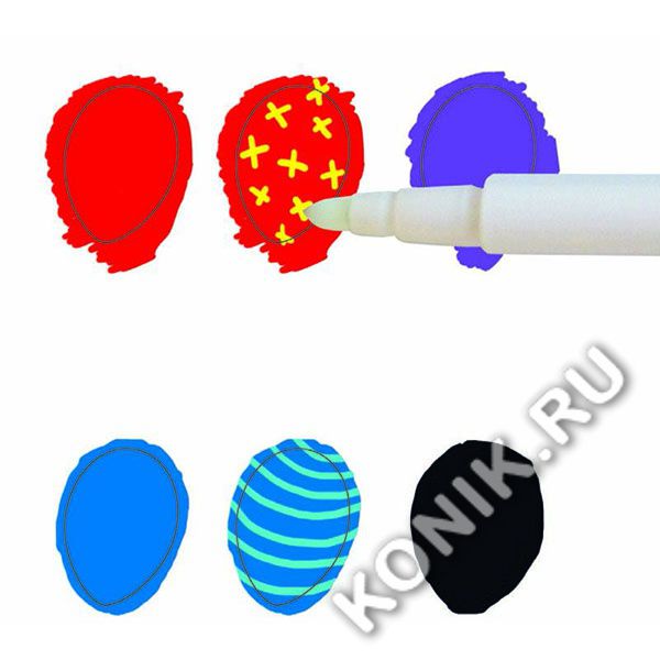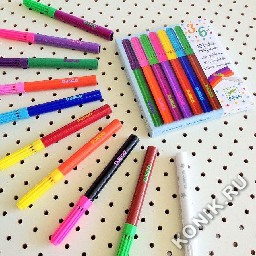 Набор волшебных фломастеров, специально разработанных для детей от 3 лет. Дети раскрашивают, затем закрашивают сверху прозрачной ручкой. Цвета меняются, как по волшебству!
