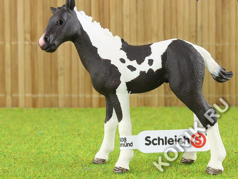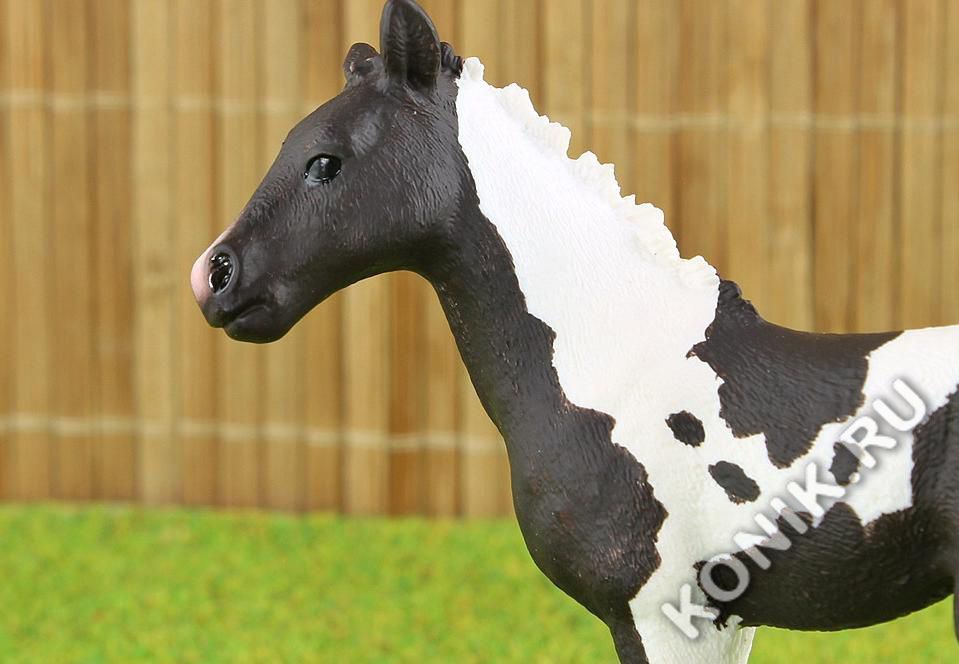 Фигурка жеребенка породы Пинто от Шляйх - яркая и грациозная игрушка, которая станет прекрасным подарком и основой для игр вашего ребенка с лошадьми. Популярные в США лошади породы Пинто отличаются резвостью и ярким окрасом. Их шкура сразу бросается в глаза, ведь на ней так много черно-белых пятнышек. Ученые США внимательно изучают окрас, характерные особенности и поведение лошадей Пинто.