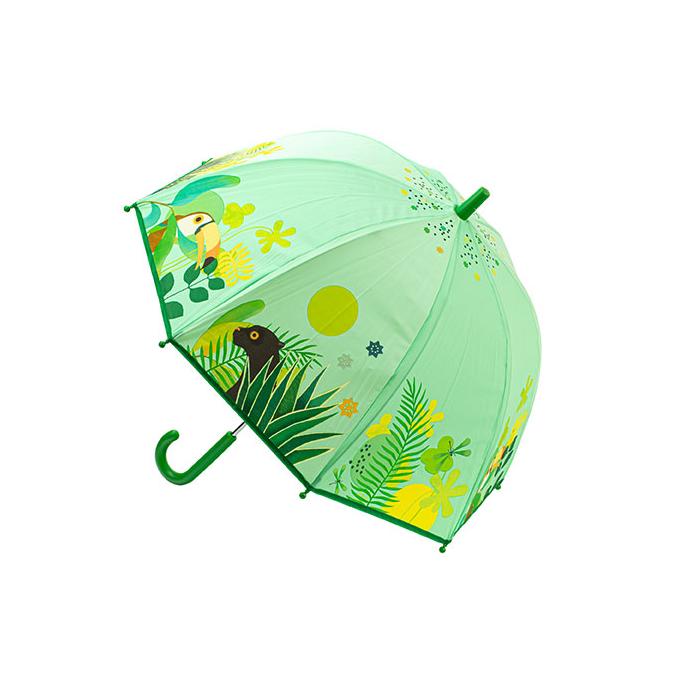 Зонтик Джунгли - красочный зонт, входящий в коллекцию ярких, оригинальных и удобных зонтов французского производителя Djeco (Джеко). Зонтик-трость Джунгли выполнен в насыщенных цветах с красивым принтом. Глубокий купол с легкостью защитит голову и плечи. Зонтик подойдет для детей от 3 - 8 лет, его длина - 68 см, диаметр в раскрытом виде - 70 см. Механизм открытия - ручной, ручка и 8 спиц сделаны из пластика. На конце каждой спицы есть насадка в виде пластикового шарика. На зонтике есть механизм защиты от защимления пальчиков. Французская компания Джеко уже более 60 лет производит развивающие игрушки и игры для детей, наборы для творчества, а также детали интерьера детской комнаты и детские аксессуары. Все товары Джеко отличаются высочайшим качеством, необычной идеей исполнения. Дизайн и иллюстрации к игрушкам Джеко разрабатываются совместно со всемирно известными художниками.