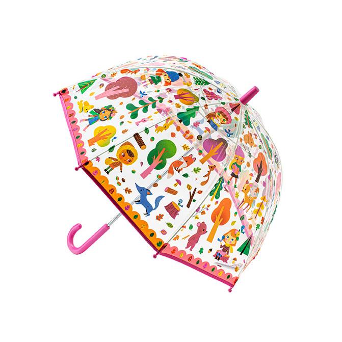 С зонтом «Лес» от французского бренда Djeco даже дождливый день превратится в веселое приключение. Этот стильный аксессуар полностью украшен паттерном на лесную тематику. Зонтик открывается и закрывается вручную, что позволяет ребенку самостоятельно управлять им без риска прищемления пальцев.