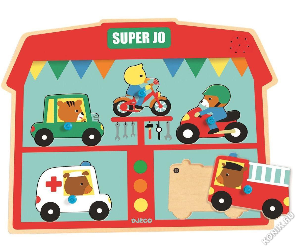 Звуковая рамка-вкладыш «Супер Джо» от компании Djeco (Джеко) — замечательная развивающая игрушка, которая непременно понравится маленьким гонщикам!
