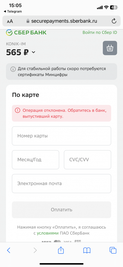 Ещё, распространённый вариант ошибки оплаты — истёк срок годности ссылки с оплатой, на которую вас перевело после оформления заказа: